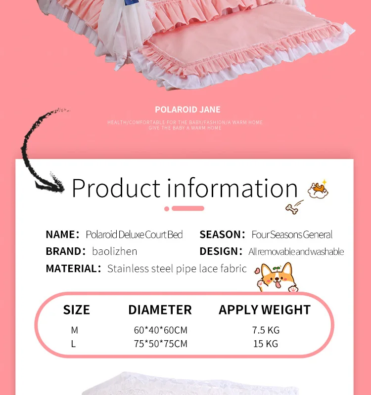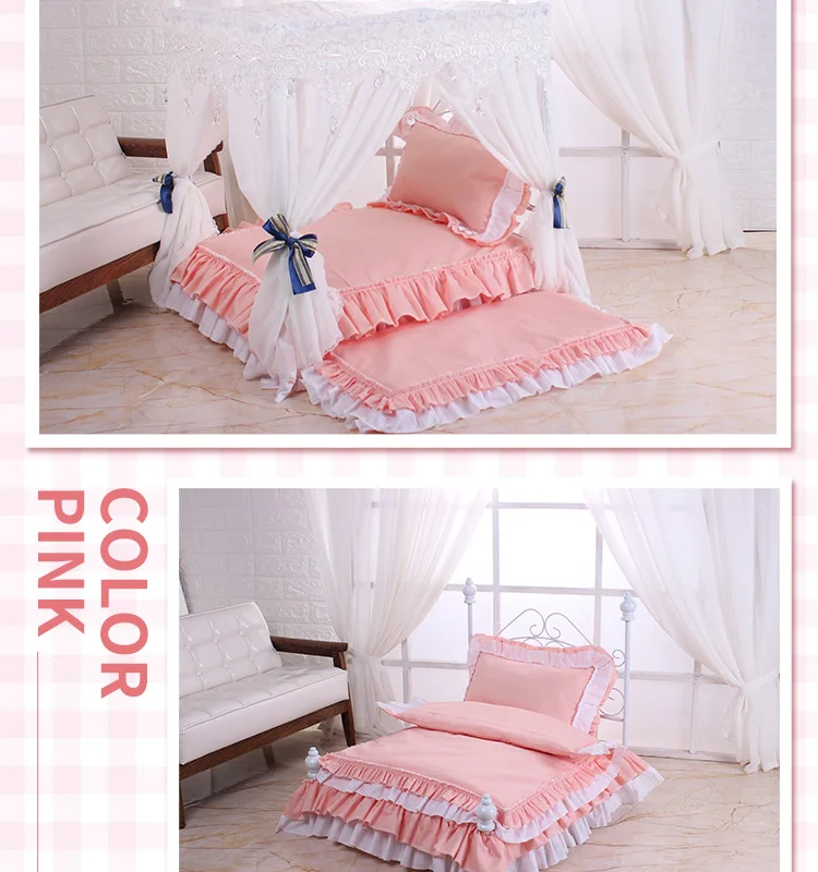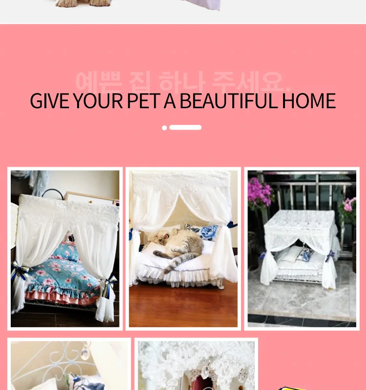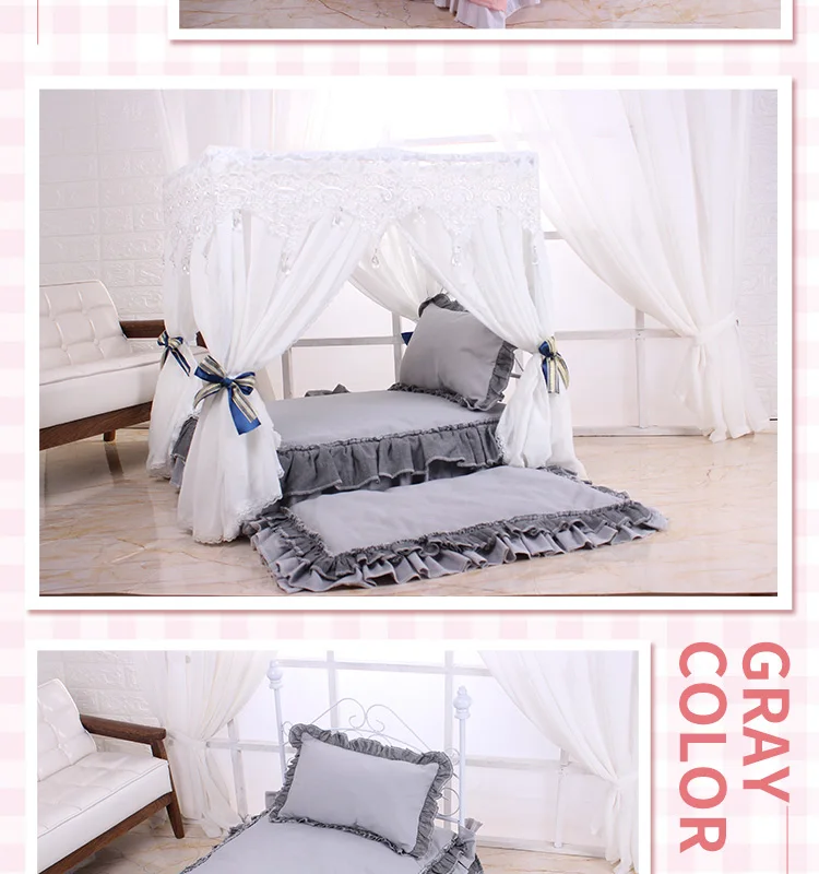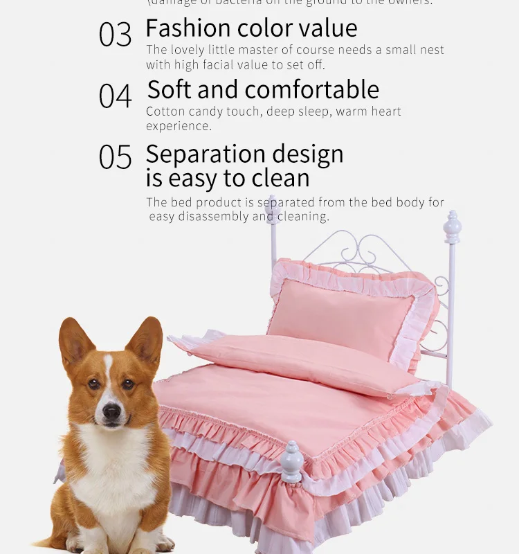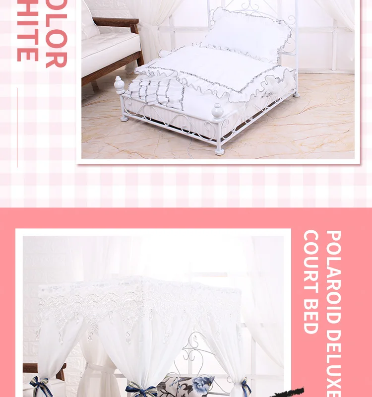 Pet Princess Bed Dog'S Luxurious Lace Iron Bed Comes With A Full Set Of Bedding